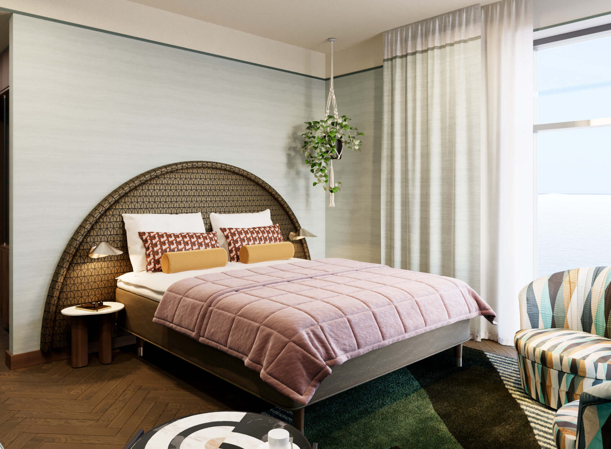 Hotellet omfattar 111 rum, varav flera har privata balkonger med utsikt mot havet. Mat- och dryckesutbudet inkluderar restaurang, café och lobbybar på entréplan samt en skybar med spektakulär utsikt. Hotellet får dessutom ett spa med överhängande utomhuspool och moderna konferensmöjligheter. Den totala lokalarean uppgår till cirka 7 300 kvadratmeter.